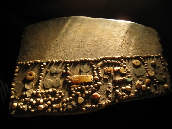 A két, egyenként nagyjából 30 x 40-es, szabálytalan alakú kőtáblákra féldrágakövek, arany- és ezüstmegmunkálások vannak rögzítve valamint egy chakana (más néven andoki kereszt), mely az inkákat jóval megelőző kultúrák számára a kozmosz és a föld kapcsolatának szimbóluma. Jeleit kisebb és nagyobb méretben, kőből vagy szent helyek falára festve az Andokban mindenütt megtaláljuk . De hogy mivel és mi módon rögzítették a kőtáblára az ékszerköveket, egyelőre